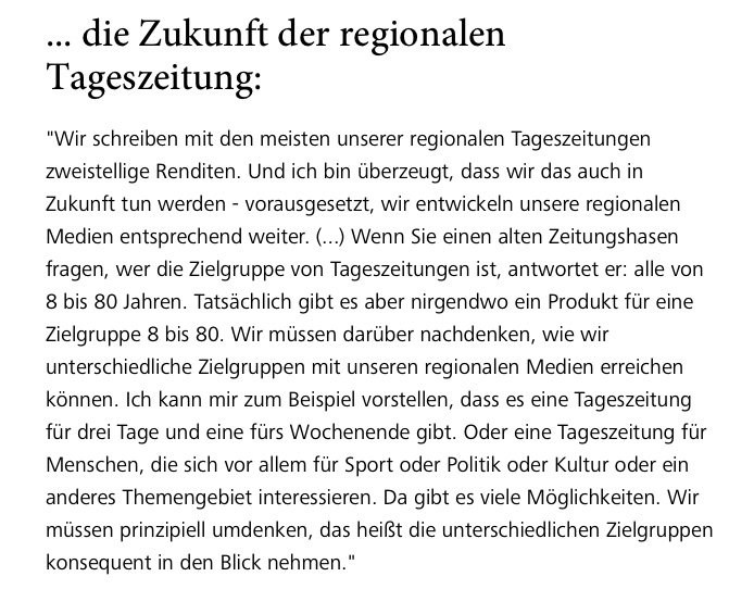 Na ja, macht ja auch nix. Und wenn die Redaktion auch nur wie angesagt einen „Tag der offenen Tür“ feiert, dann sollten Sie durch den Türrahmen gehen und essen und trinken auf Kosten des Hauses. Und wenn Sie nicht wissen sollten, worüber Sie mit den Redakteuren plaudern könnten, dann gebe ich Ihnen einen Stoff, der aus HORIZONT stammt, wo einer der oberen Chefs vom Hamburger Abendblatt (Funke Mediengruppe) interviewt wurde, nämlich Manfred „Charly“ Braun. Und dieser sagte u. a.: