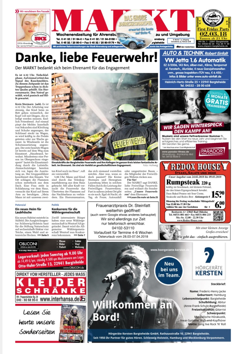 Der MARKT erzählt seinen Ahrensburger Inserenten, dass dieses Anzeigenblatt dafür sorgt, dass die Kunden am Ort, also in Ahrensburg und Umgebung einkaufen. Und weil der kommende Sonntag ein verkaufsoffener in Ahrensburg ist, hat der MARKT viele Inserate von Ahrensburger Läden akquiriert. Und…?