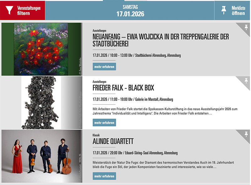 Und was zeigt die Stadt Ahrenburg auf ihrer Homepage heute unter „Veranstaltungen“ an? Richtig: „Mama macht Party“ im N1Club – siehe die Abbildung!