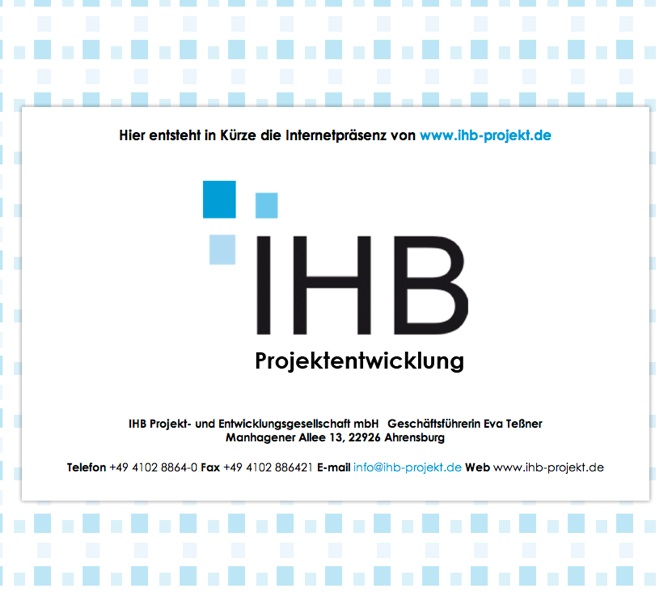 Und überhaupt: Der Stormarnbeilage ist zu entnehmen, dass Hoffmann „von der IHB Projekt- und Entwicklungsgesellschaft“ ist. Wenn man diese Gesellschaft bei Google sucht, kommt das unten stehende Resultat dabei heraus (Stand von heute). Immerhin erfährt man, dass die Gesellschaft eine Geschäftsführerin hat mit Namen Eva Teßner. Über Theo Hoffmann ist dort nichts zu lesen. Frage: Welche Funktion hat Herr Hoffmann bei der IHB, wenn er nicht Geschäftsführer ist? Darf er überhaupt rechtsverbindliche Erklärungen für diese Gesellschaft abgeben? Ich denke, bevor die Stadt und deren Politiker mit Theo Hoffmann verhandeln, sollte erst mal geklärt werden, ob der Mann berechtigt ist, verbindliche Zusagen für die Investoren zu machen, sowohl für den baulichen Teil als auch für den Betreiber des Kinos. Unverbindliches wurde bis jetzt ja schon mehr als genug geäußert, finden Sie nicht auch...?