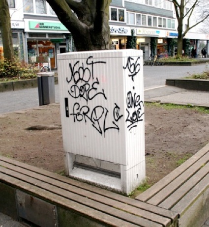 Aber nicht nur Müll, sondern auch ein attraktives Kunstwerk steht auf unserem Rathausplatz, und zwar das hier – siehe rechts!