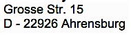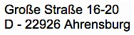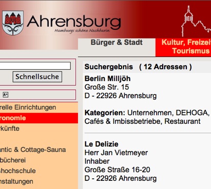 Wo Sie den Blödsinn mit „Grosse“ und „Große“ finden? Natürlich dort, wo noch viel mehr Humbug zu finden ist, nämlich im Internet auf der Homepage von Ahrensburg Humbugpage von Lachstadt. Dort stehen die beiden Straßennamen hintereinander auf derselben Seite und keiner der verantwortlichen Phlegmatiker aus der Verwaltung hat‘s bis heute bemerkt.